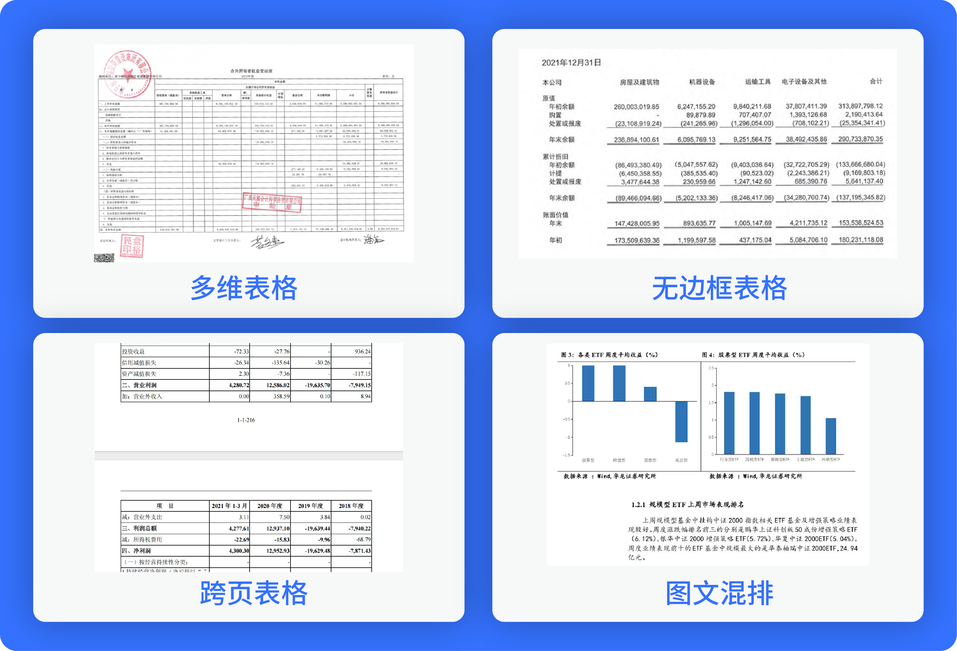 精準解析多格式、多類型文檔,尤其擅長處理金融領域常見的異形表格與復雜排版。