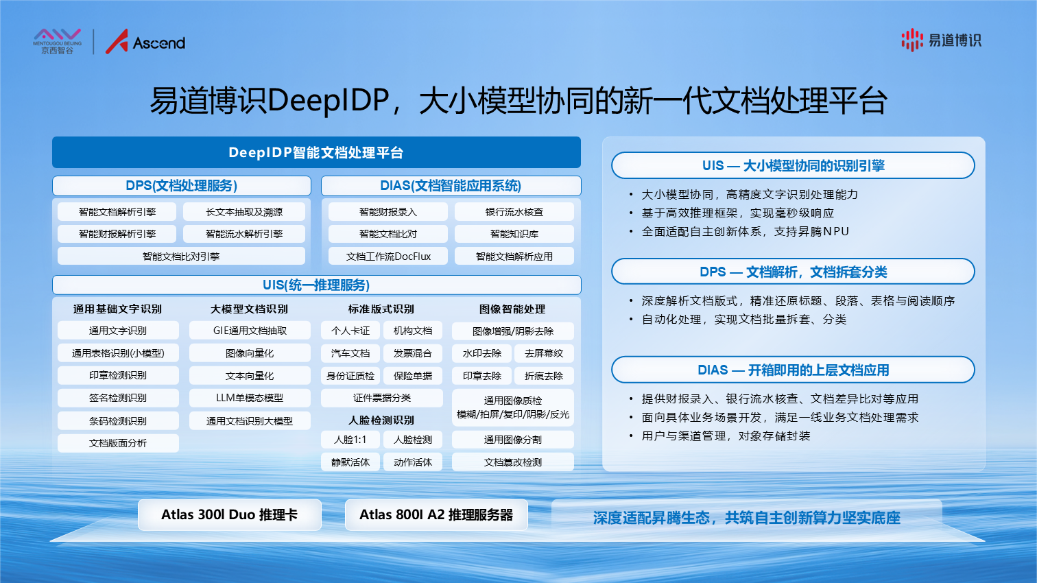 尤為值得關(guān)注的是,DeepIDP已深度適配昇騰,實(shí)現(xiàn)與底層硬件的無(wú)縫對(duì)接,為客戶(hù)提供了一條真正低門(mén)檻、高可靠的業(yè)務(wù)平滑遷移路徑。