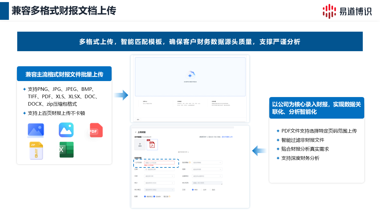 智能財(cái)報(bào)錄入系統(tǒng)支持PNG、JPG等常見(jiàn)圖像格式,兼容PDF、Excel、Word及ZIP壓縮包等多種文件類(lèi)型,能夠適配不同來(lái)源的財(cái)報(bào)資料。針對(duì)實(shí)際業(yè)務(wù)中資料類(lèi)型繁雜、夾雜非財(cái)報(bào)文件的情況,系統(tǒng)可自動(dòng)識(shí)別并過(guò)濾無(wú)關(guān)文件。